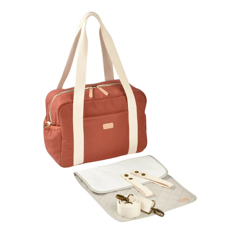 - Accessoires inclus : matelas à langer, poche isotherme, bandoulière amovible et accroches poussette pour faciliter les sorties avec bébé