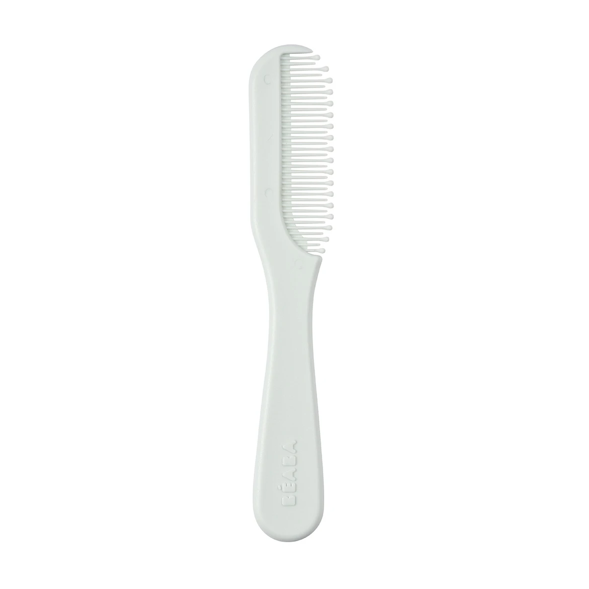 Produit 2ème âge. Poils de la brosse en nylon pour plus de douceur. Peigne avec dents arrondies pour ne pas blesser le cuir chevelu de bébé.