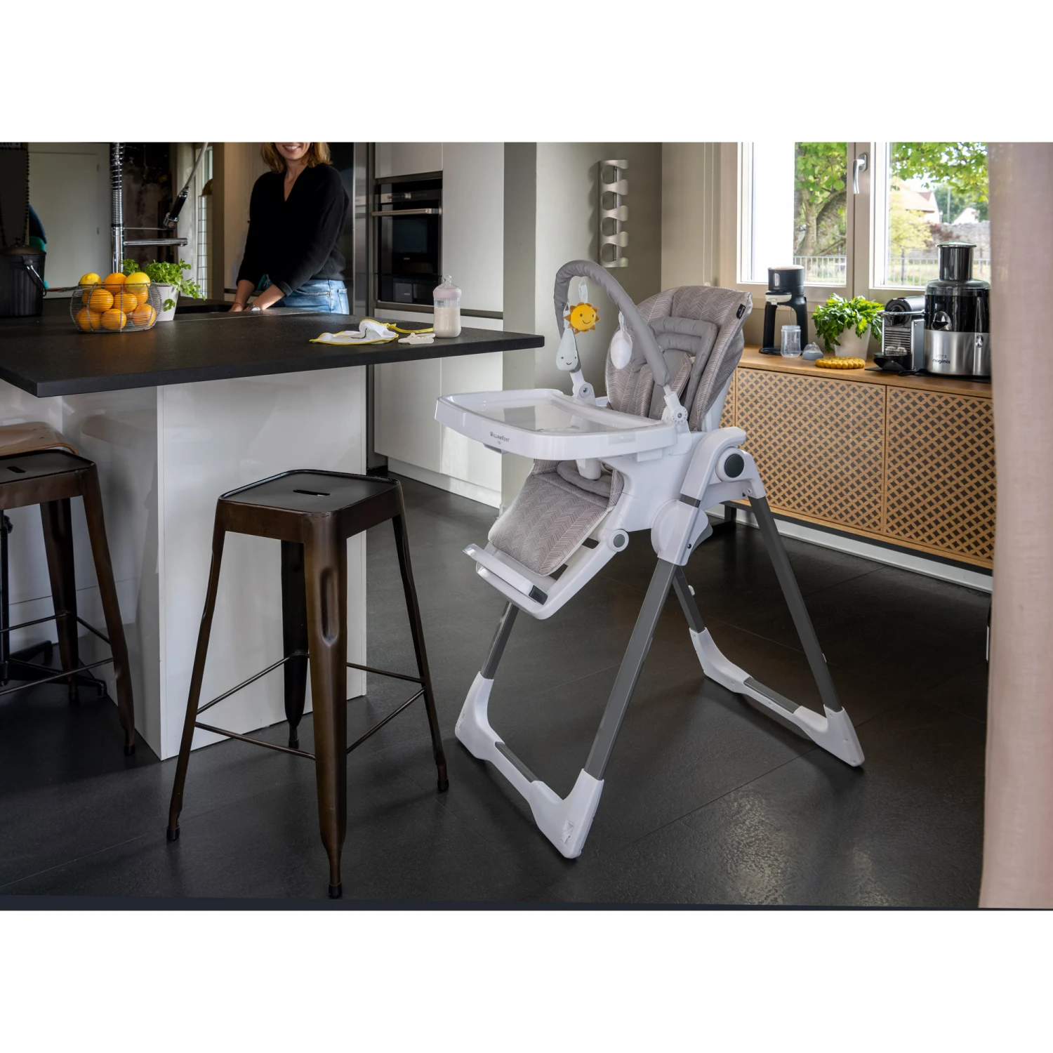 - Chaise haute réglable avec fonction transat
