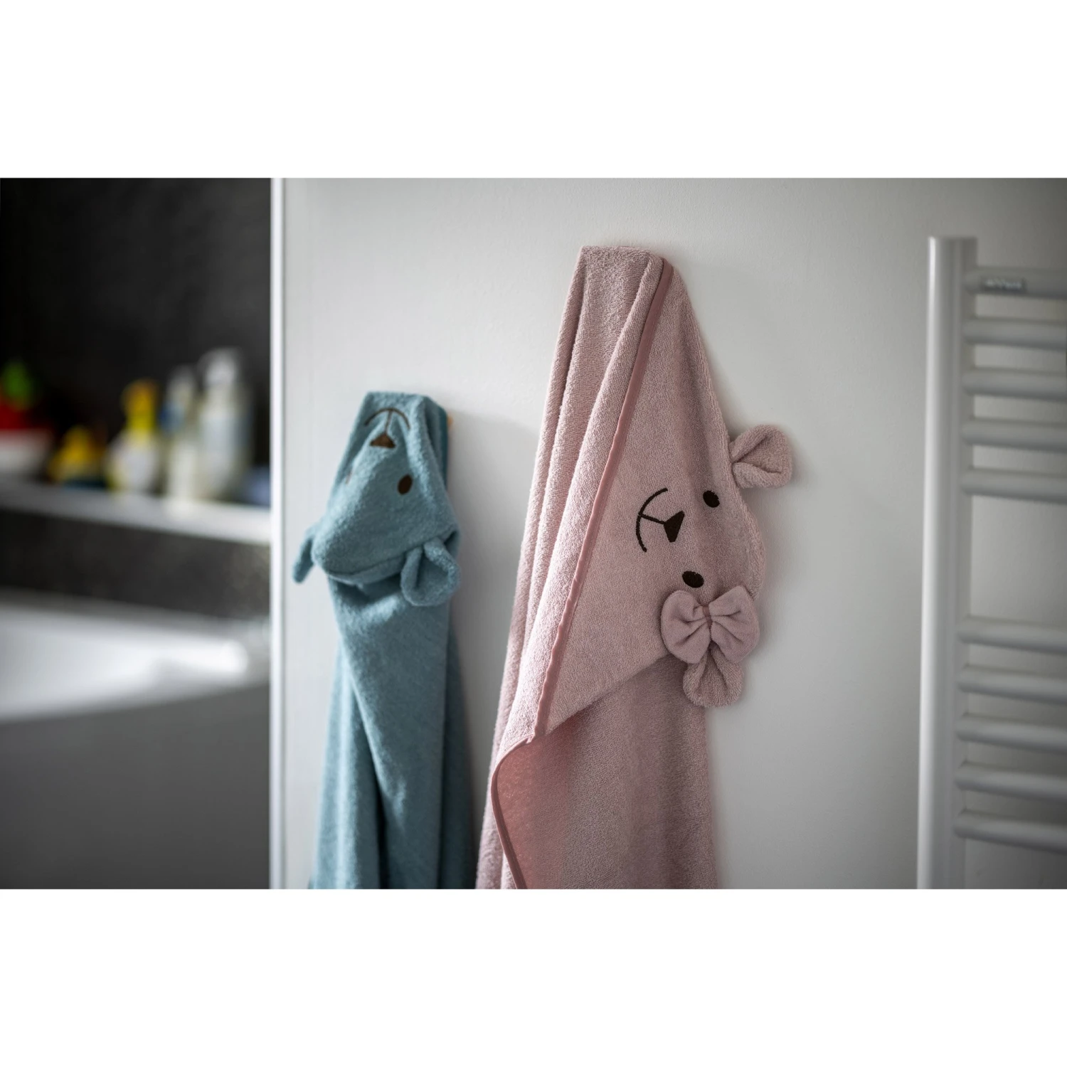 - Dimensions : cape de bain 100 x 100 cm et gant de toilette 15 x 20 cm