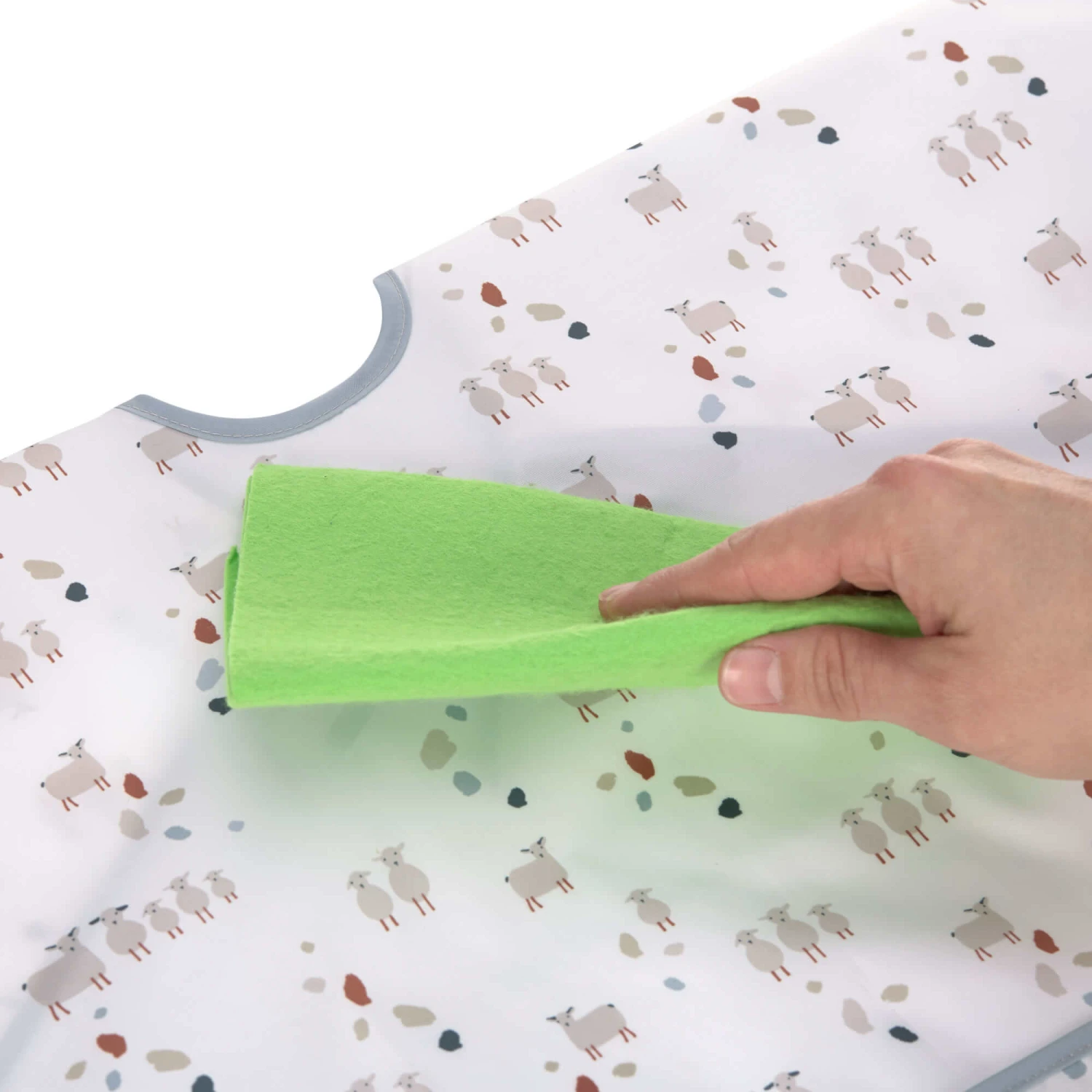 Les bavoirs sont en matière imperméable, ils sont donc parfaits pour les repas, mais aussi pour colorier ou bricoler, à la maison ou à la crèche.