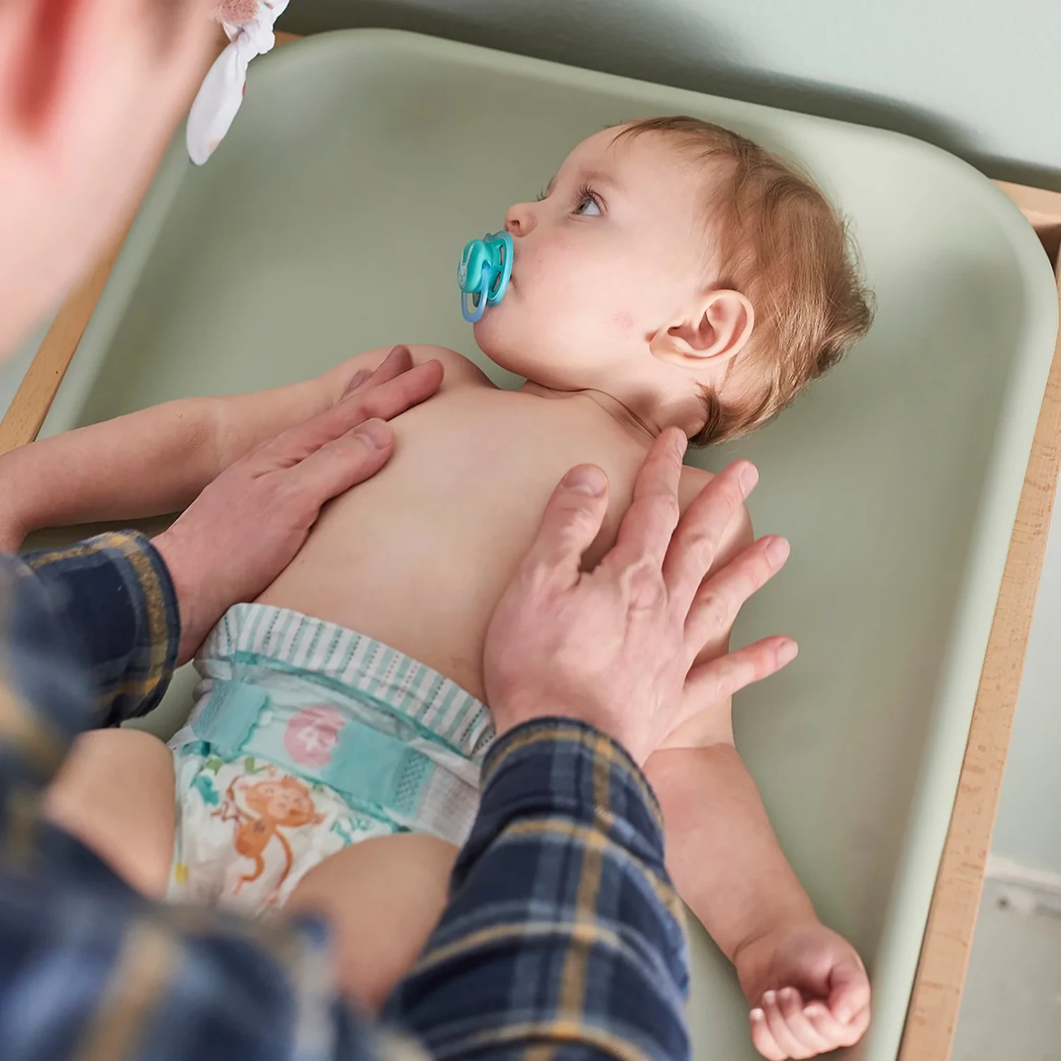 Avec le matelas à langer agréablement doux aux couleurs subtiles, changer les couches devient un jeu d’enfant. Où que ce soit, car le matelas est très léger et donc idéal à emporter : Le tapis à langer en mousse PU assure un confort et une détente absolus. Un bord surélevé ainsi que le fond nervuré offrent une sécurité supplémentaire lors du changement de couches, si le bébé devait être un peu agité. Particulièrement pratique : en cas de petites mésaventures, le matelas à langer peut être simplement lavé, car il est en mousse PU imperméable. Changer les couches devient un plaisir !