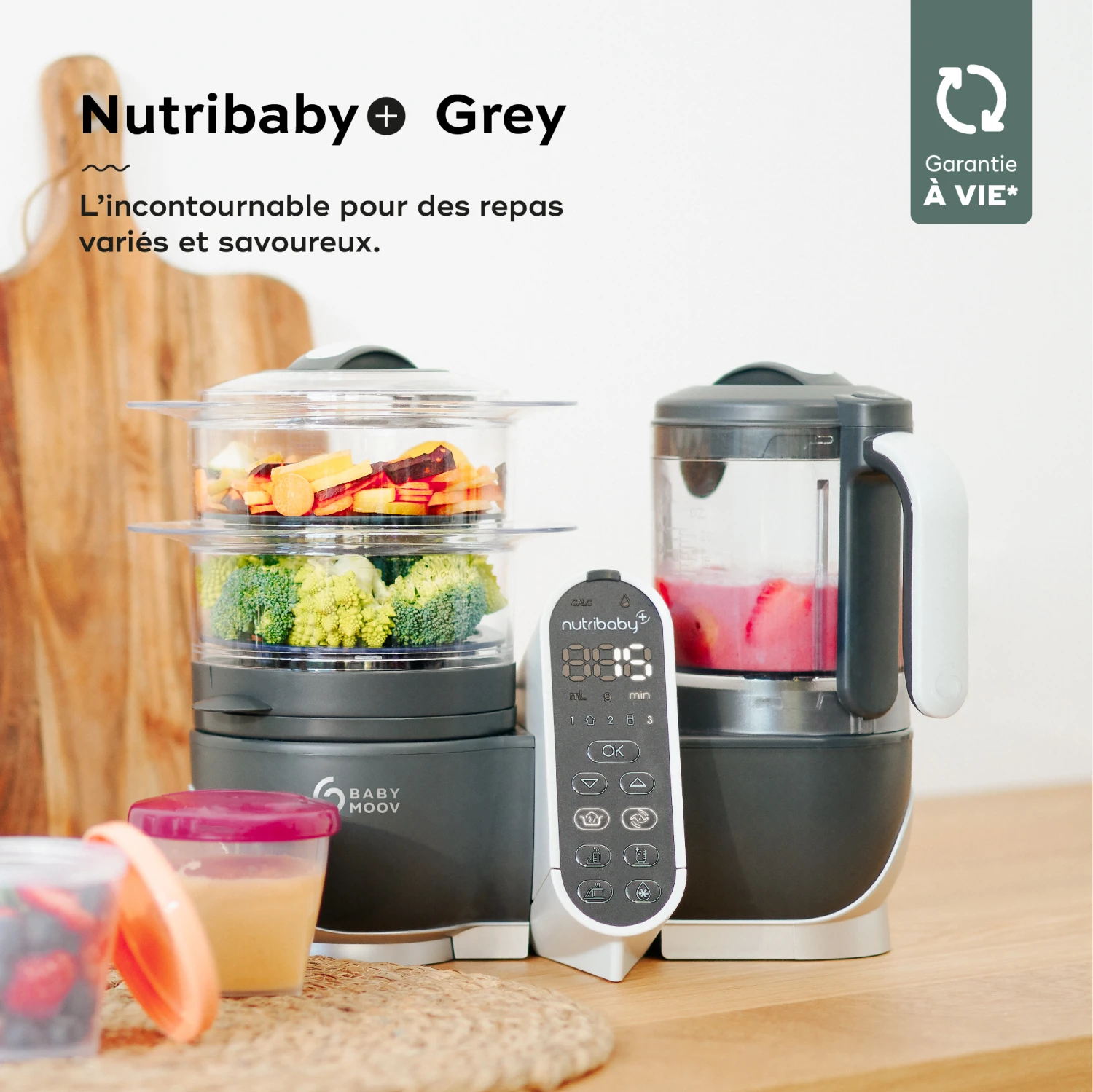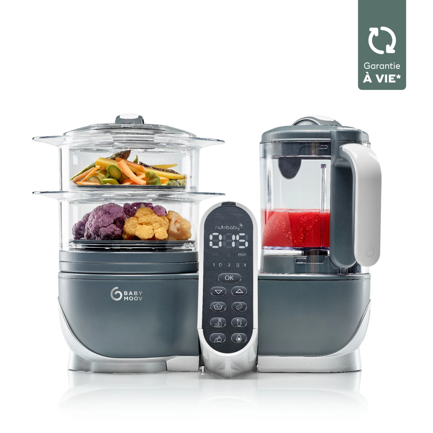 Babymoov, l’expert des repas pour bébé, imagine depuis plus de 20 ans des robots multifonctions uniques : les Nutribaby ! Pour la première fois, cuire et mixer simultanément devient possible. Tous les aliments peuvent être cuisinés : fruits et légumes, viande, poisson, œuf, céréales, féculents… Un gain de temps considérable pour les jeunes parents qui souhaitent offrir à leur enfant des repas faits maison, sains et savoureux.