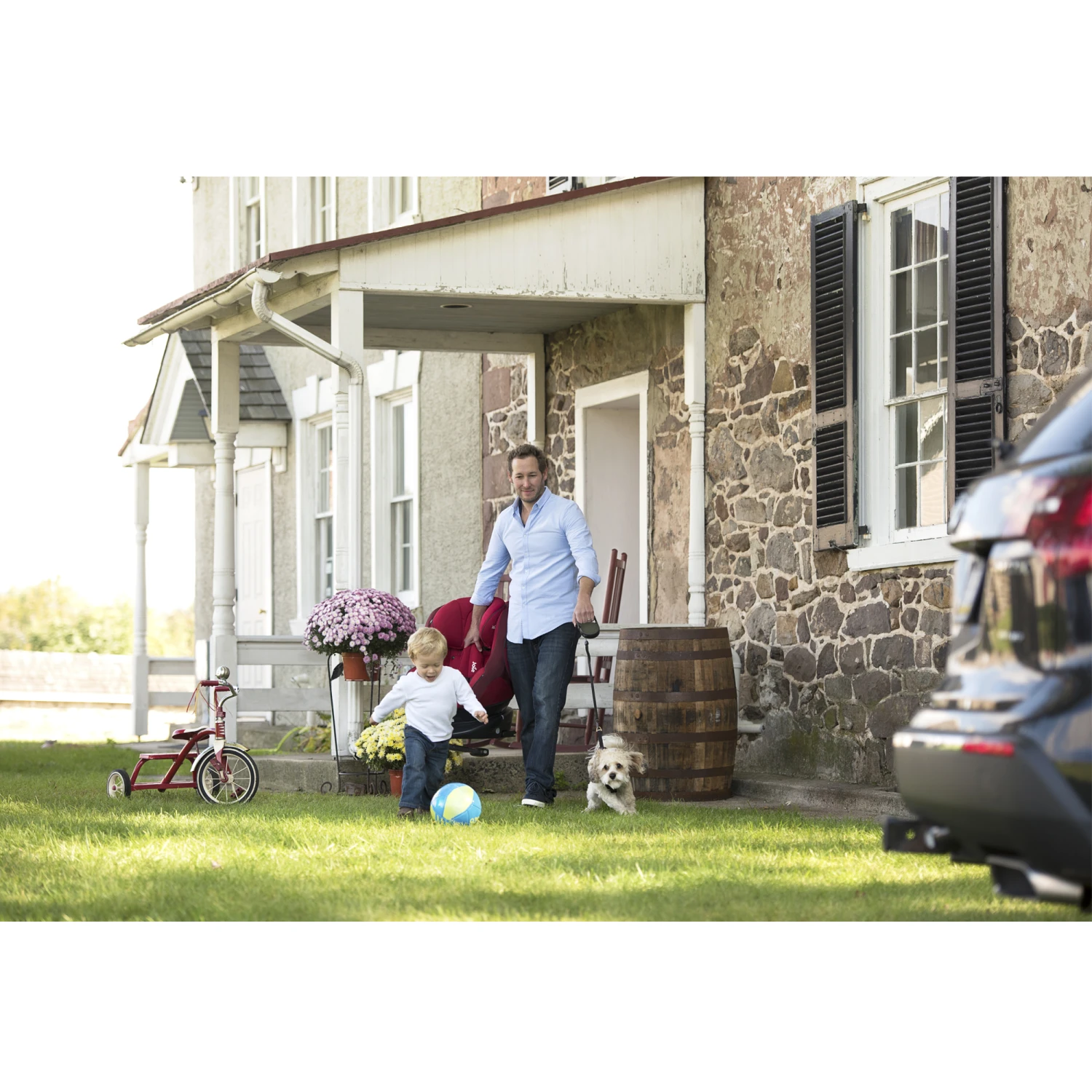 Avec ses 44 cm de large et sa base compacte ce siège rentre facilement dans toutes les voitures même les plus petites