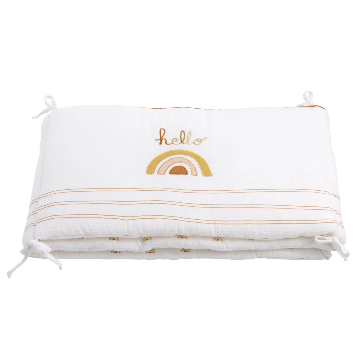 Ce tour de lit Sunlight s’adapte au lit 120x60cm ou 140x70cm. Chaleureux, les motifs et les couleurs du thème Sunlight apportent un style au lit de bébé. Son design coloré et chaleureux apportera une touche de décoration à la chambre de votre enfant. Très douillet, il évitera à l’enfant de se cogner contre les barreaux du lit.