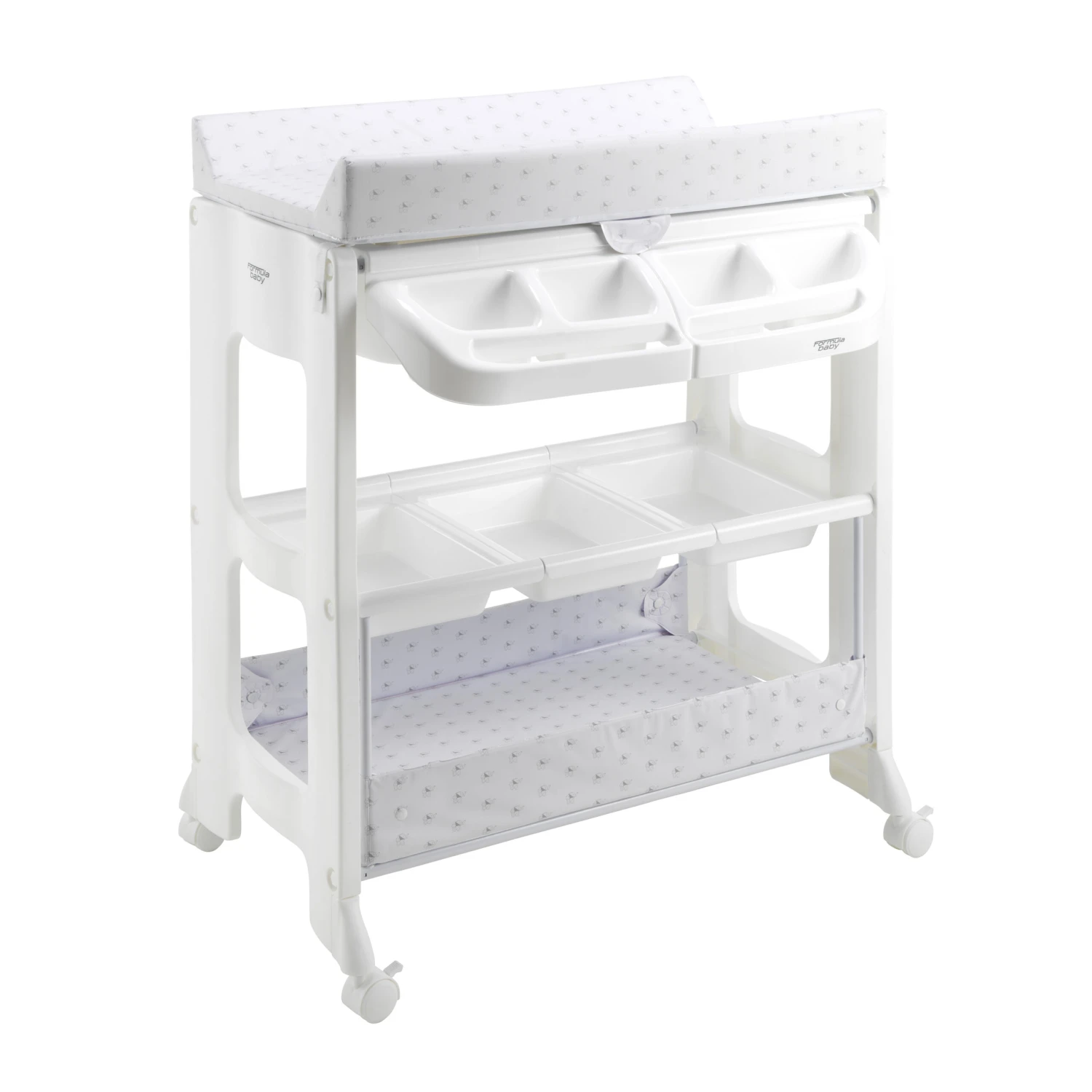 Pratique et confortable, la table à langer FORMULA baby est également équipée de bacs de rangement amovibles et spacieux, qui vous permettront d’attraper et de ranger rapidement vêtements, couches, lingettes, crème hydratante ou encore thermomètre de bain en un coup de main ! De quoi avoir tout le nécessaire tout le temps à portée de main.